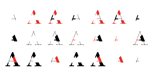 each letter and number are split into three independent versions